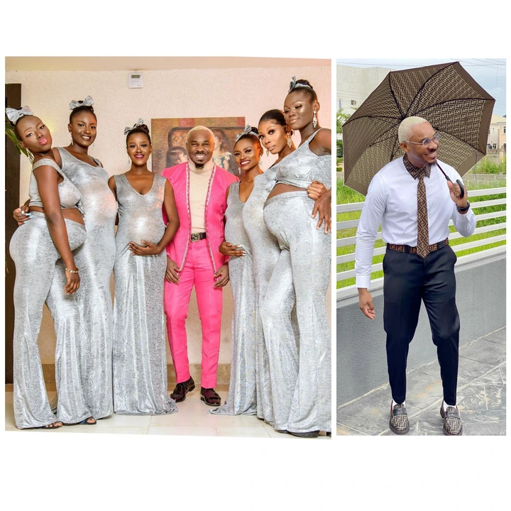 A Handsome Nigerian Man Attends Popular Nollywood Actor's Wedding With 6 Pregnant Ladies Who He Claims are His "Baby Mamas To Be".